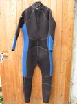 1- dielný, 7mm - superstretch titanium, zosilnená ochrana kolien a lakťov, bez kukly, zips vzadu, farba modrá/čierna, ako nový