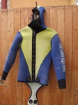 2- dielný, 5mm, zips vpredu, farba žlto/čierna, často používany, lepené manžety