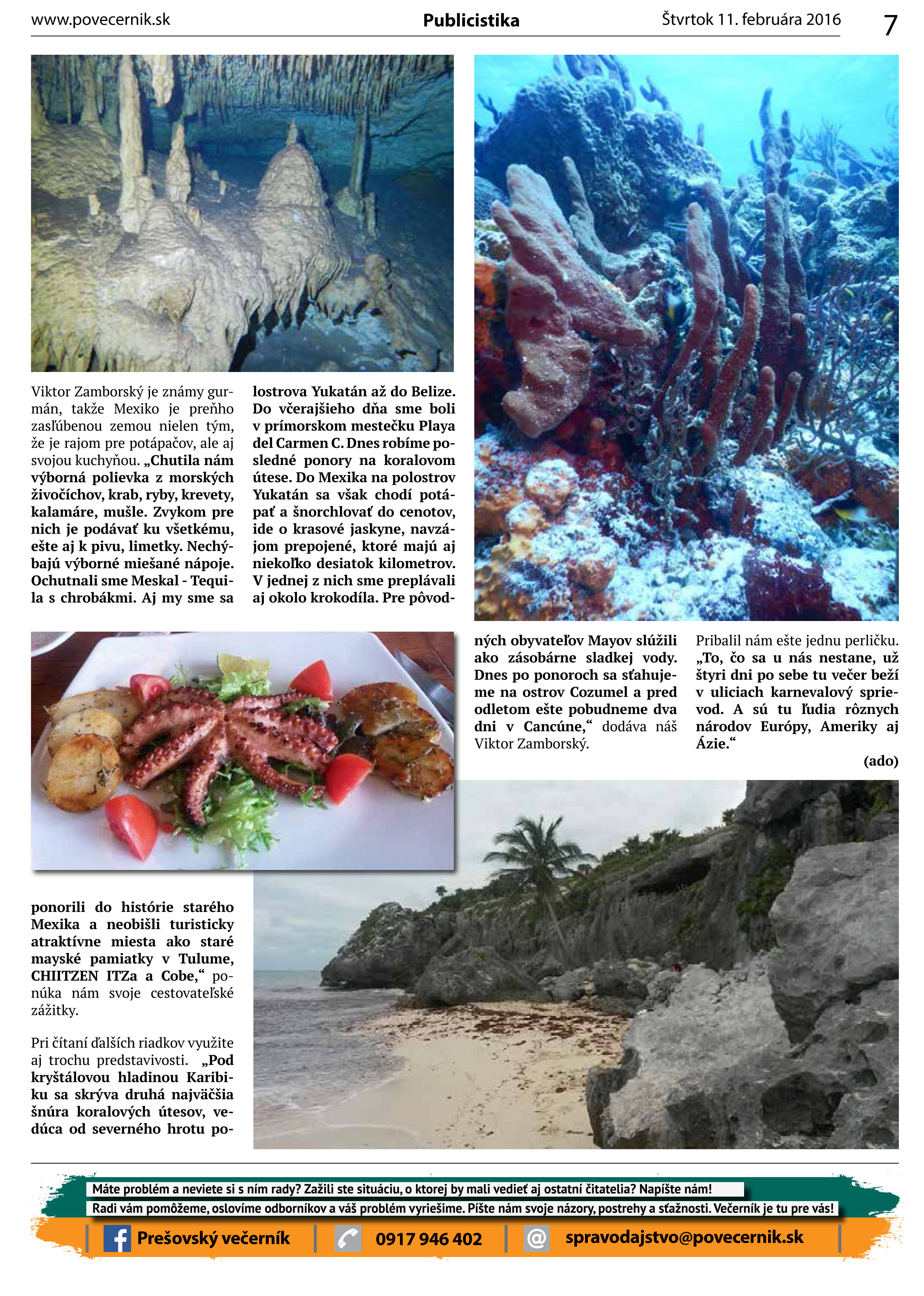 Prešovský Večerník 11.2.2016 ... Článok o potápaní v Mexiku 2016